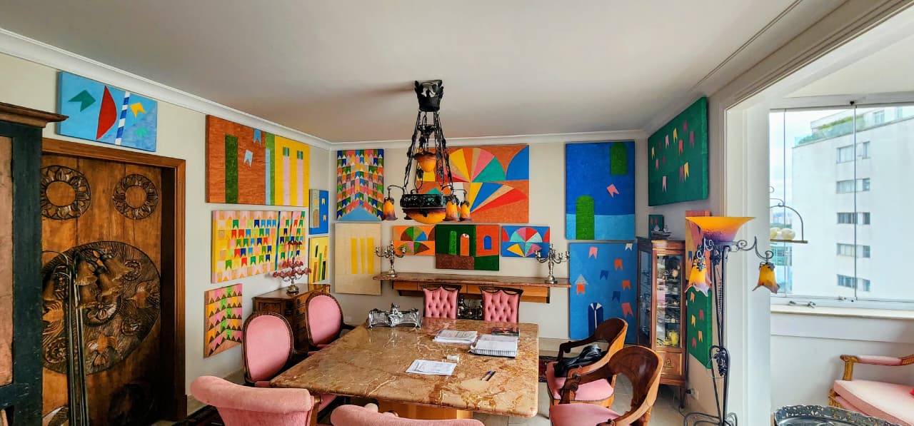 Seus primeiros estudos foram baseados em elementos do cotidiano urbano paulistano e da cultura popular brasileira, com uma forte presença de referências arquitetônicas e simbólicas, como fachadas de casas, bandeirinhas e mastros de festividades tradicionais.