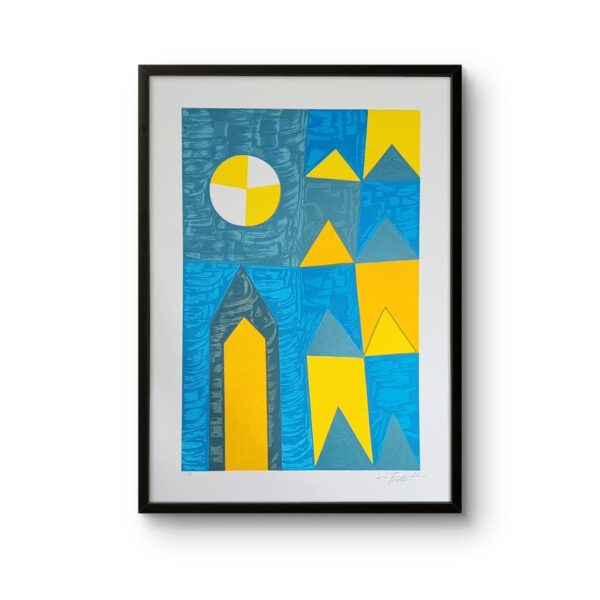 Uma obra que resgata técnicas clássicas com um olhar contemporâneo. Nesta criação exclusiva, Zi Facella utiliza a têmpera sobre tela para explorar formas, cores e texturas que homenageiam a estética modernista brasileira.