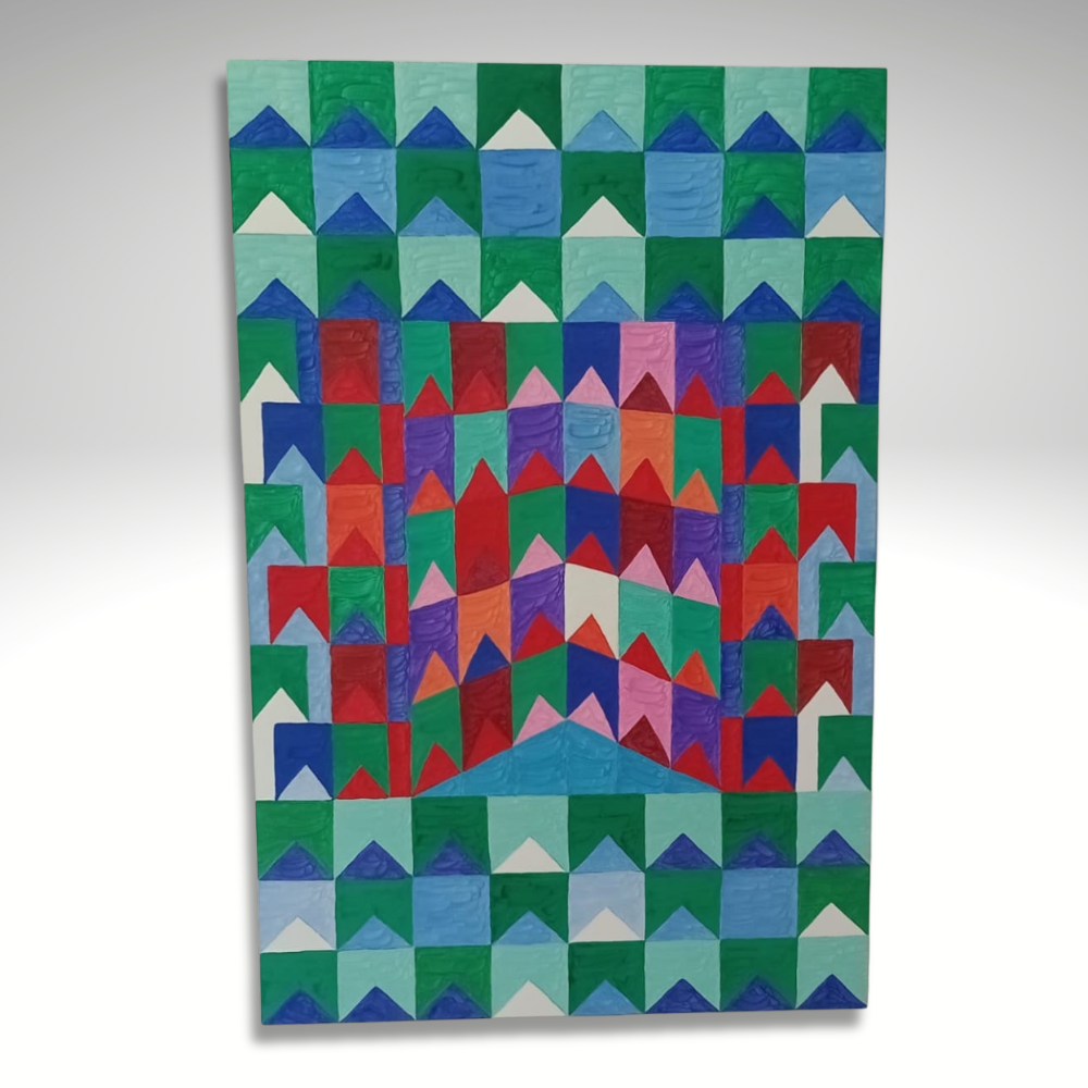 Uma obra que resgata técnicas clássicas com um olhar contemporâneo. Nesta criação exclusiva, Zi Facella utiliza a têmpera sobre tela para explorar formas, cores e texturas que homenageiam a estética modernista brasileira.
