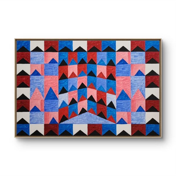 Uma obra que resgata técnicas clássicas com um olhar contemporâneo. Nesta criação exclusiva, Zi Facella utiliza a têmpera sobre tela para explorar formas, cores e texturas que homenageiam a estética modernista brasileira.