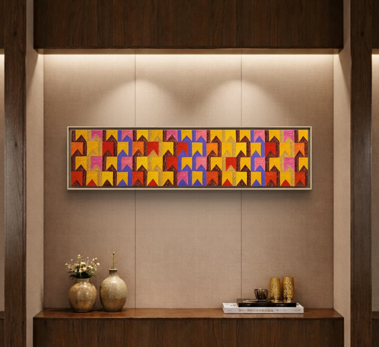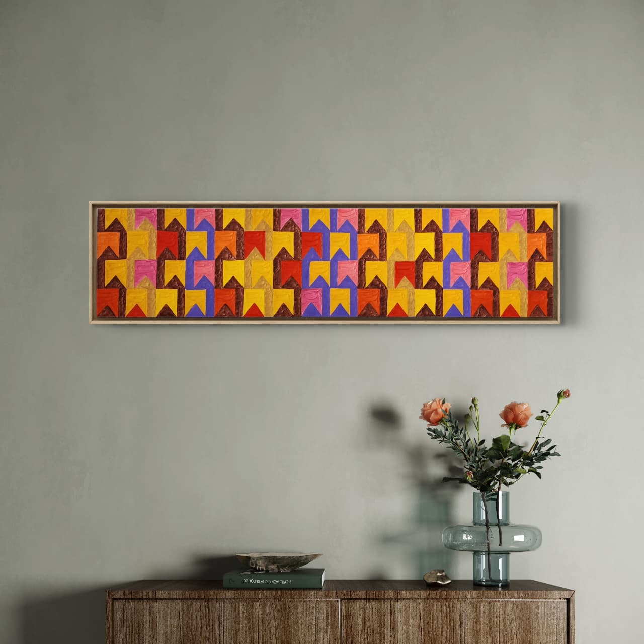 Uma obra que resgata técnicas clássicas com um olhar contemporâneo. Nesta criação exclusiva, Zi Facella utiliza a têmpera sobre tela para explorar formas, cores e texturas que homenageiam a estética modernista brasileira.