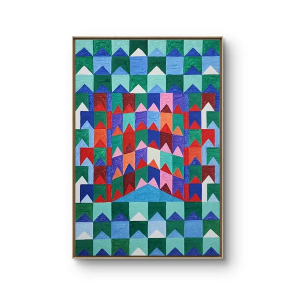 Uma obra que resgata técnicas clássicas com um olhar contemporâneo. Nesta criação exclusiva, Zi Facella utiliza a têmpera sobre tela para explorar formas, cores e texturas que homenageiam a estética modernista brasileira.