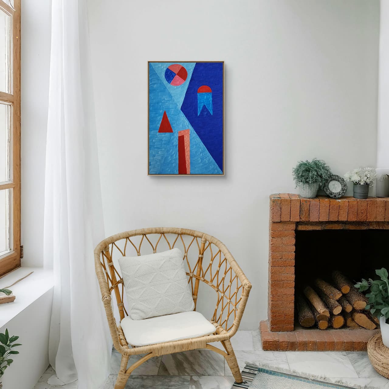 Uma obra que resgata técnicas clássicas com um olhar contemporâneo. Nesta criação exclusiva, Zi Facella utiliza a têmpera sobre tela para explorar formas, cores e texturas que homenageiam a estética modernista brasileira.