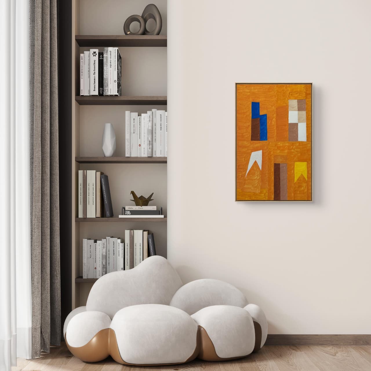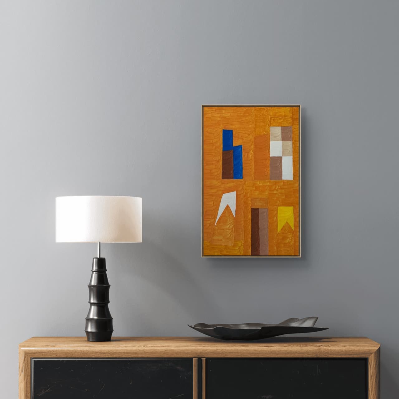 Uma obra que resgata técnicas clássicas com um olhar contemporâneo. Nesta criação exclusiva, Zi Facella utiliza a têmpera sobre tela para explorar formas, cores e texturas que homenageiam a estética modernista brasileira.