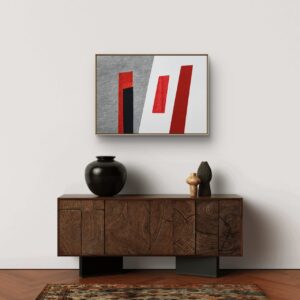 Uma obra que resgata técnicas clássicas com um olhar contemporâneo. Nesta criação exclusiva, Zi Facella utiliza a têmpera sobre tela para explorar formas, cores e texturas que homenageiam a estética modernista brasileira.