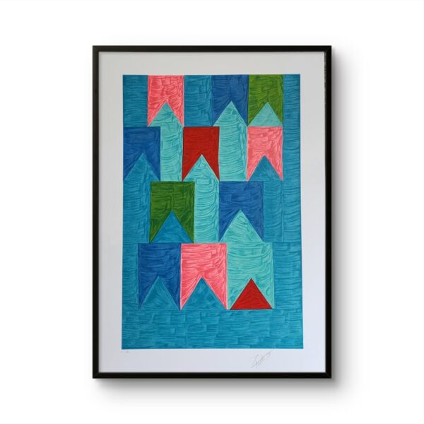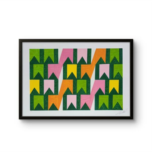 Uma obra que resgata técnicas clássicas com um olhar contemporâneo. Nesta criação exclusiva, Zi Facella utiliza a têmpera sobre tela para explorar formas, cores e texturas que homenageiam a estética modernista brasileira.