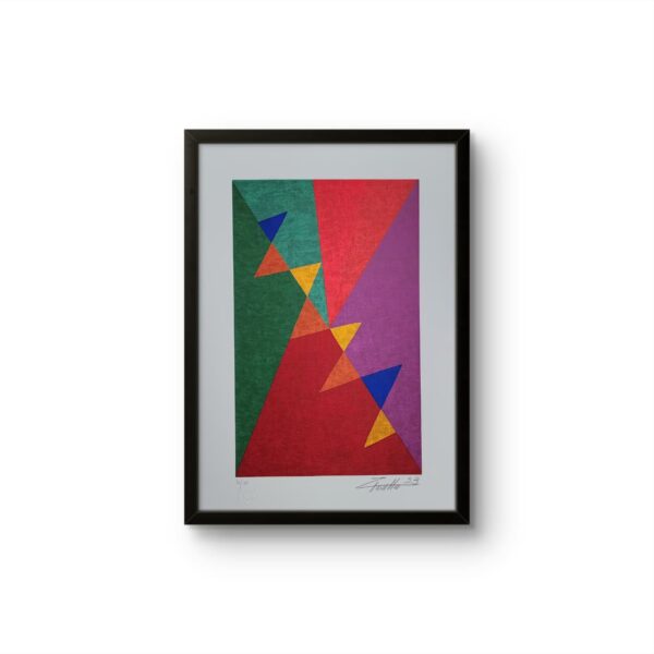 Uma obra que resgata técnicas clássicas com um olhar contemporâneo. Nesta criação exclusiva, Zi Facella utiliza a têmpera sobre tela para explorar formas, cores e texturas que homenageiam a estética modernista brasileira.