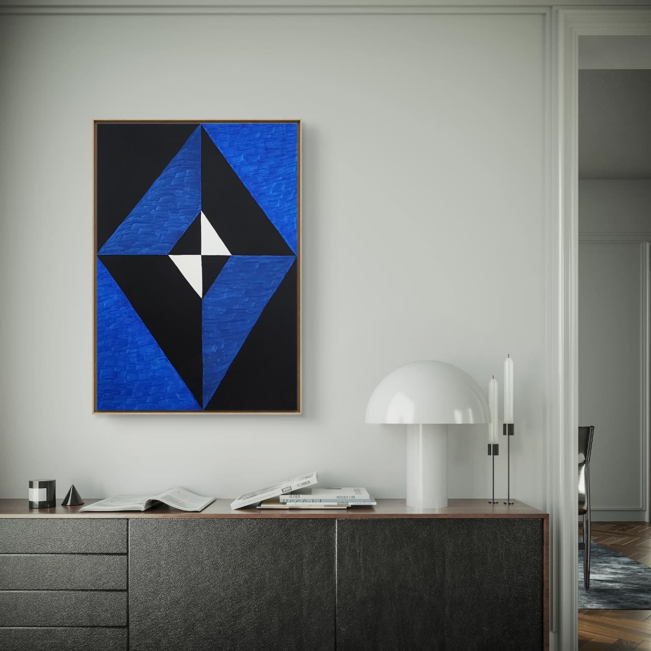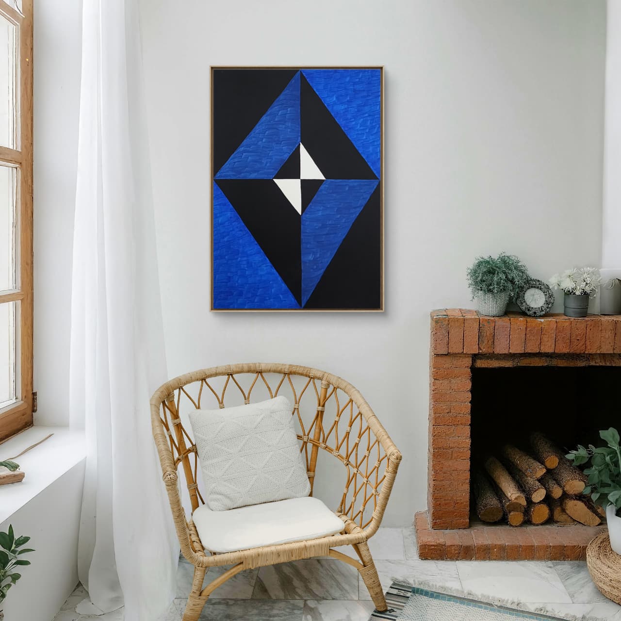 Uma obra que resgata técnicas clássicas com um olhar contemporâneo. Nesta criação exclusiva, Zi Facella utiliza a têmpera sobre tela para explorar formas, cores e texturas que homenageiam a estética modernista brasileira.