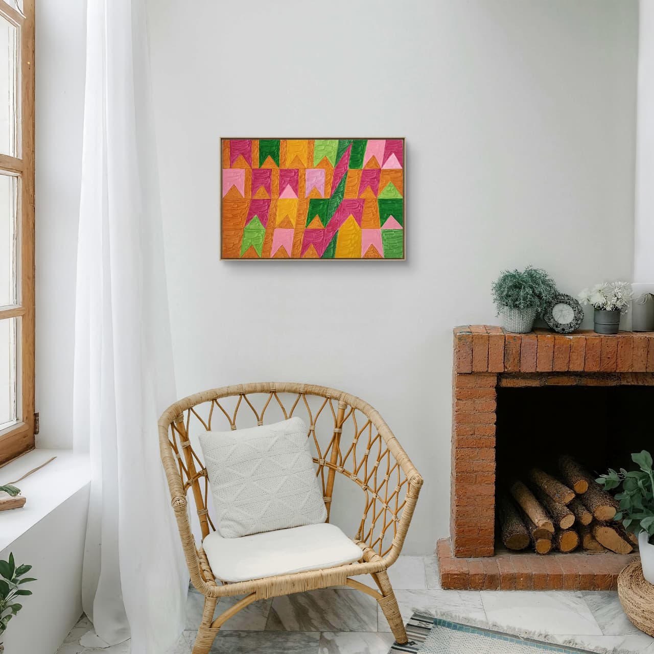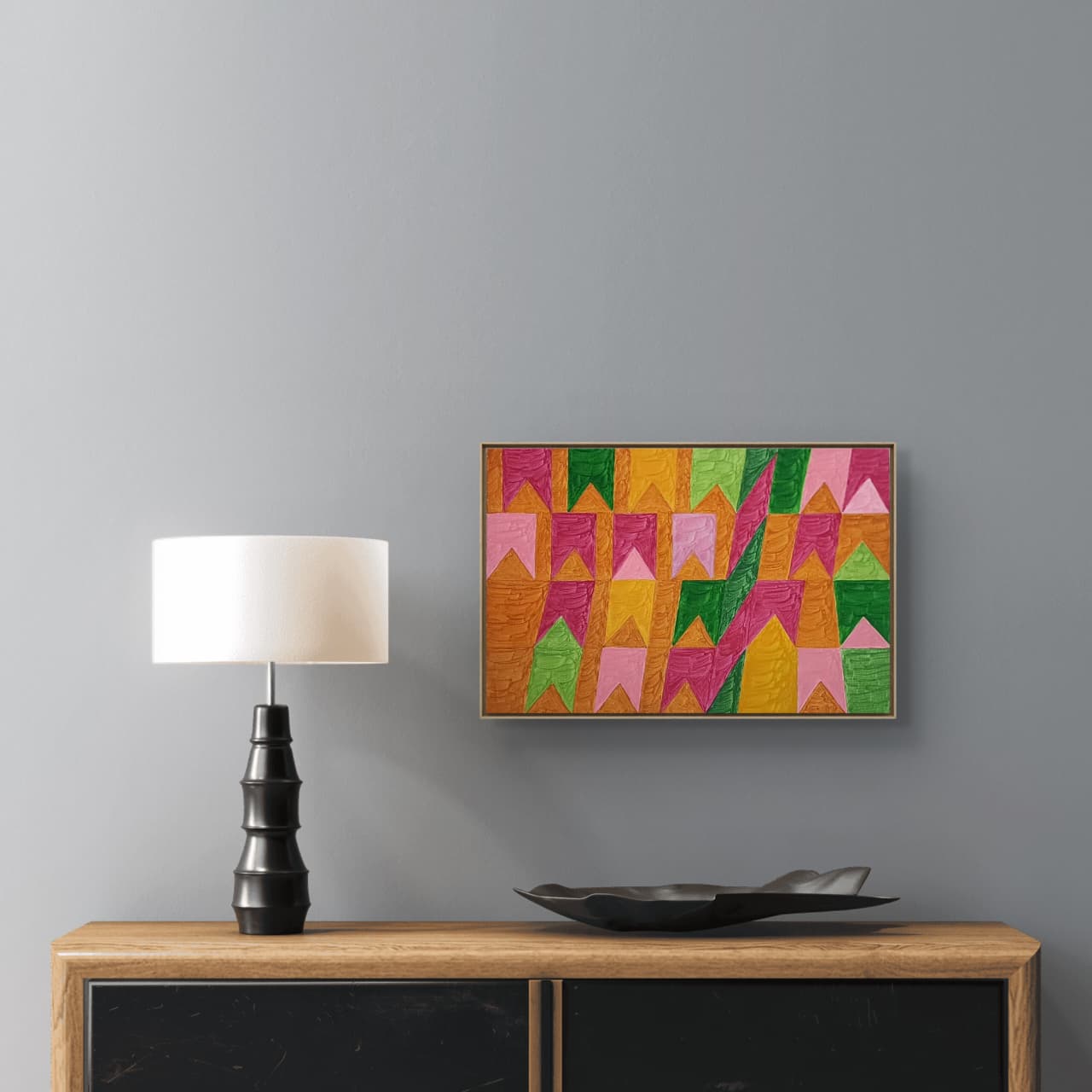 Uma obra que resgata técnicas clássicas com um olhar contemporâneo. Nesta criação exclusiva, Zi Facella utiliza a têmpera sobre tela para explorar formas, cores e texturas que homenageiam a estética modernista brasileira.